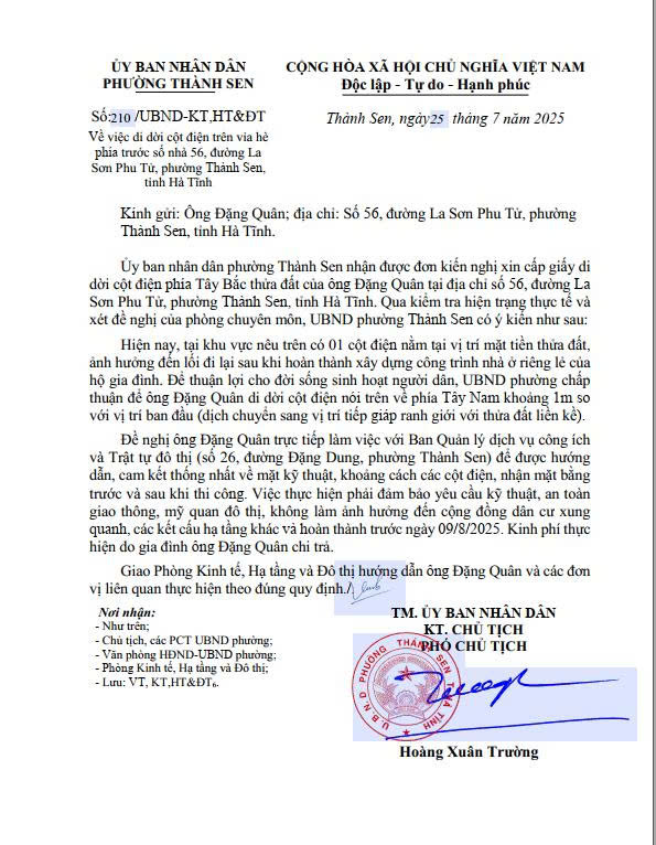 Trả lời kiến nghị của ông Đặng QuânẨn danh25/07/2025A -A+Ẩn danh25/07/2025A -A+File đính kèm23.7.2025-Vv-di-doi-cot-dien-so-nha-56-la-son-phu-tu(25.07.2025_16h53p13)_signed.pdf